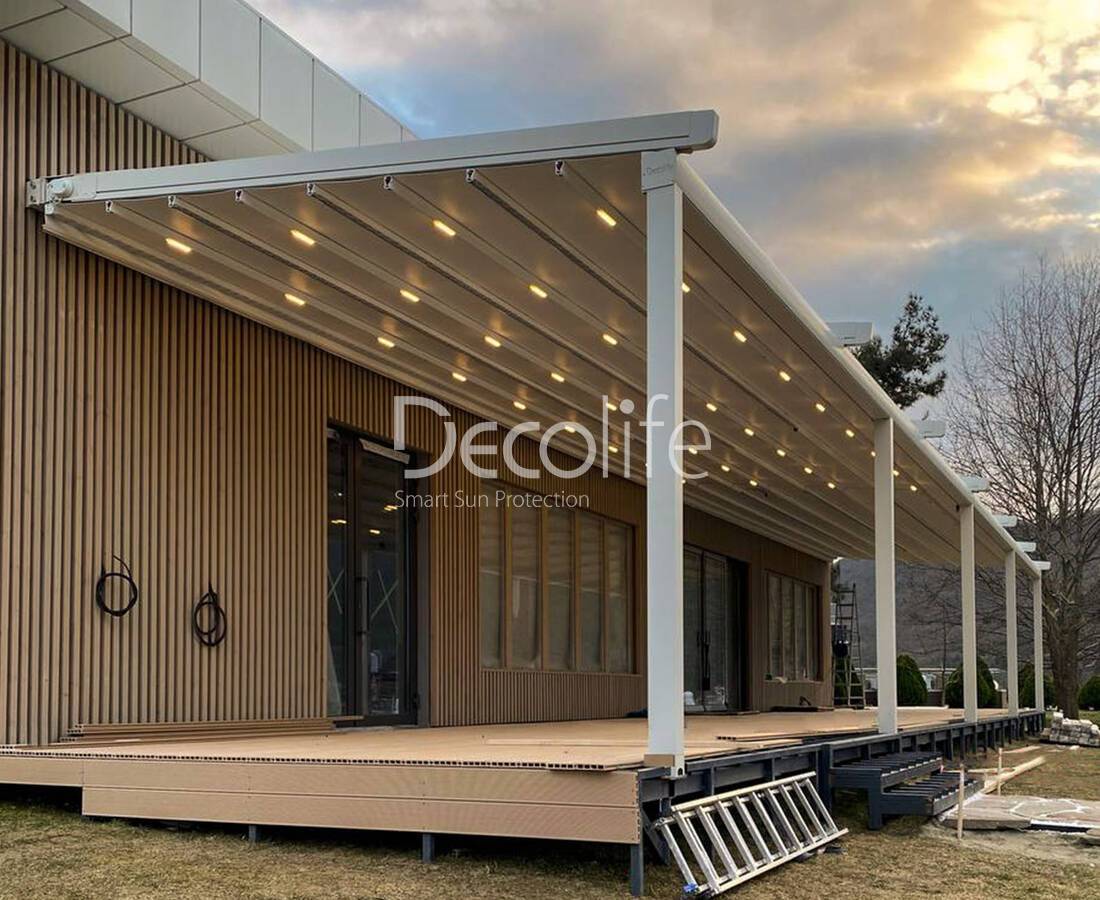 Перголы тентовые Decolife Basic & Pro New, реализовано партнером ООО "Европейские Солнцезащитные Системы" - г. Зеленоградск,"Grand Hotel Royal Lions"