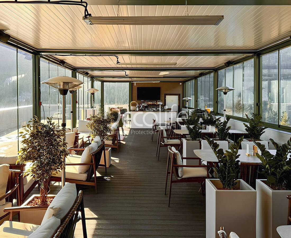 Перголы Decolife В500-25П, В600 PIR + раздвижное остекление S200 - КЧР, Архыз, Майри Парк Отель