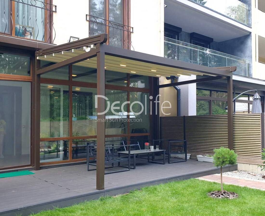 Пергола Decolife Bioclimatic B700-25С + вертикальные системы ZIP130, реализовано партнером "ООО Люкс Террас" - г. Москва