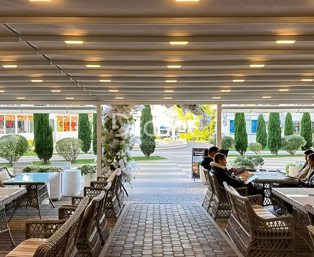 Пергола тентовая Decolife Basic&Pro New с маркизами G400 - г. Геленджик, ресторан "Сицилия"