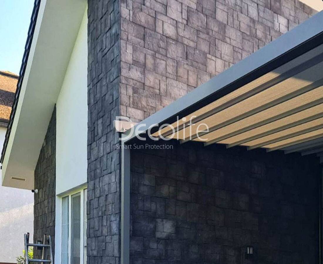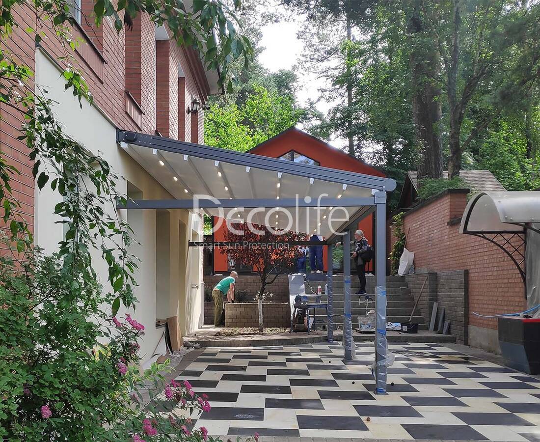 Пергола тентовая Decolife Project Light, реализовано нашим партнером ООО "Европейские Солнцезащитные Системы" - г. Зеленоградск