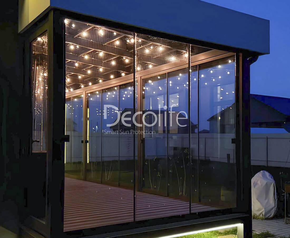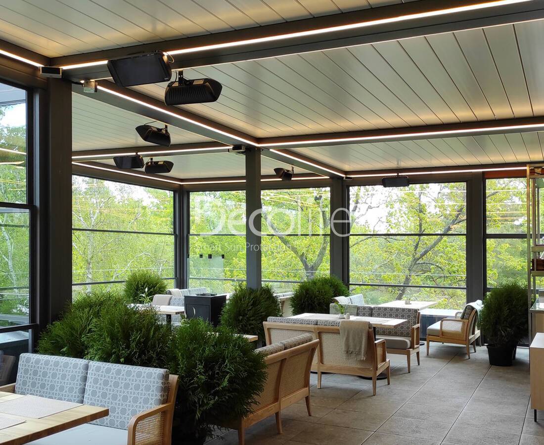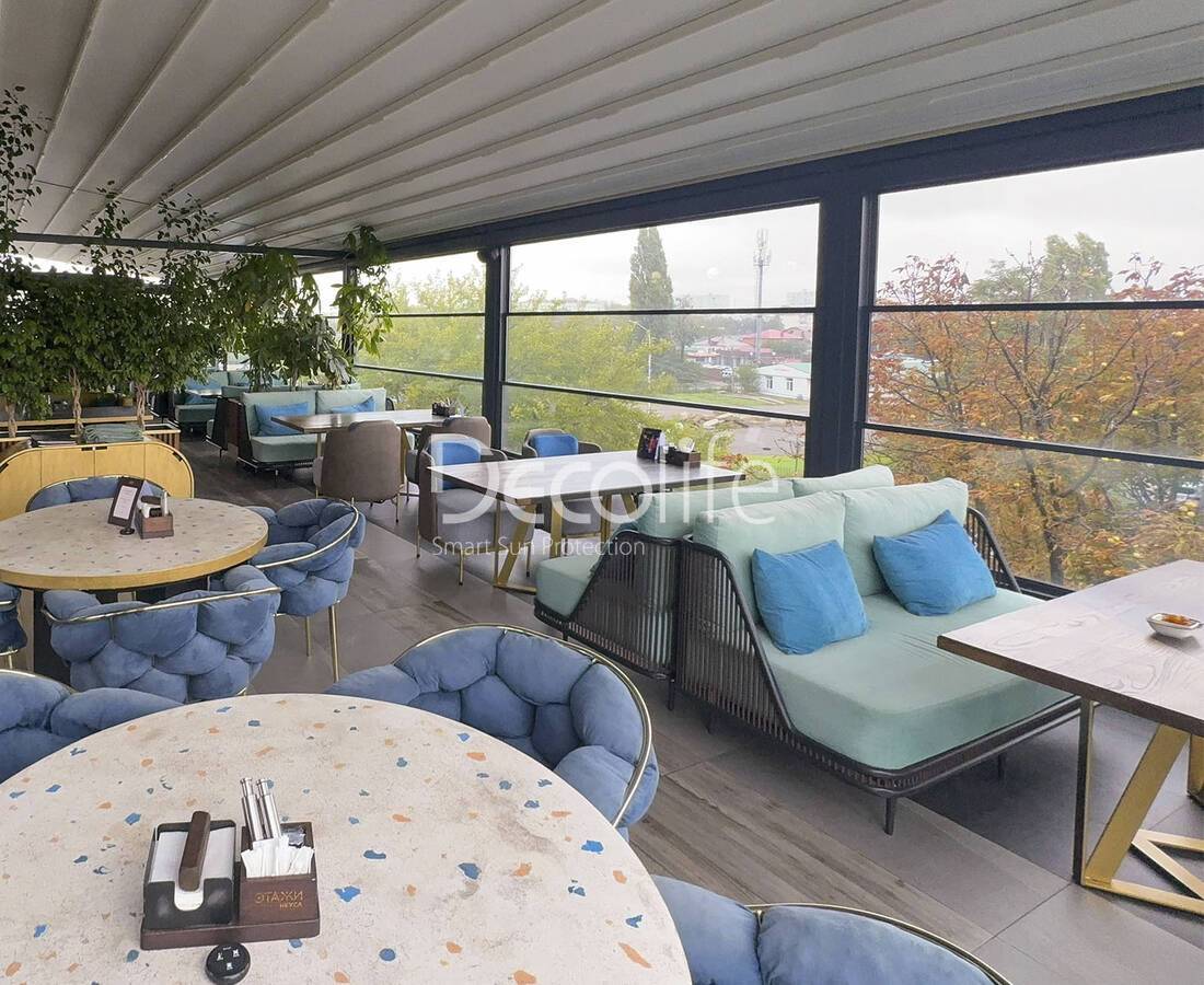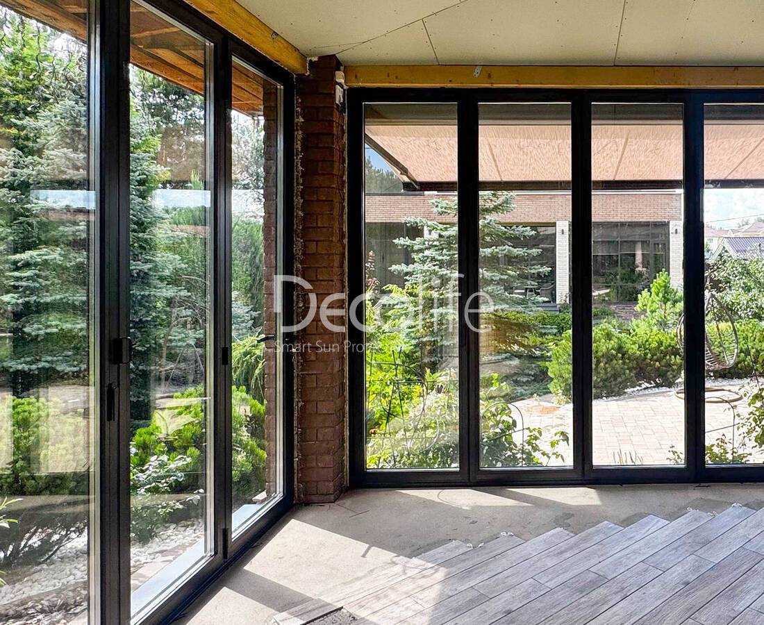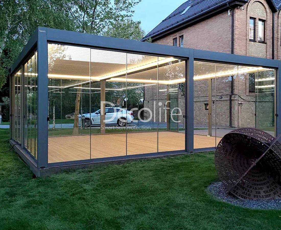 Пергола биоклиматическая Decolife B500-20П + Гильотинное остекление W500 - г. Светлогорск